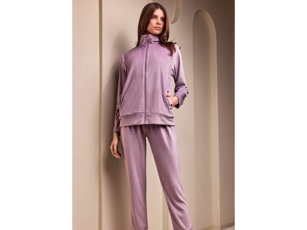 Tato elegantní domácí souprava Lormar je ideálním společníkem pro odpočinek v pohodlí domova. Skládá se z měkké mikiny s předním zipem a dlouhých volných kalhot. Mikina umožňuje snadné oblékání díky celopropínacímu zipu, zatímco kalhoty zajišťují volnost pohybu a relaxaci. Souprava je ušitá ze sametového materiálu, který je příjemný na dotek, je jemný a hřejivý.