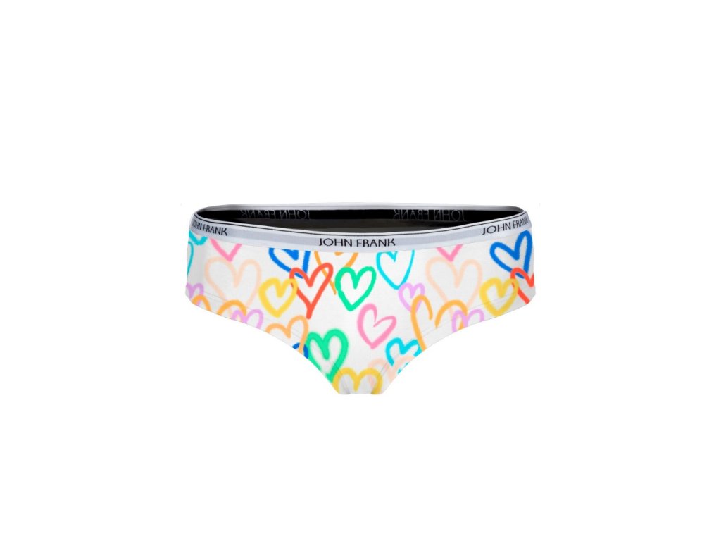 Dámské kalhotky střihu hipster od značky John Frank z vysokého podílu bavlny. Kalhotky s módně zpracovaným potiskem jsou velmi příjemné na dotek a pohodlné při nošení. Jemná, středně široká guma v pase má kolem logo John Frank. Do vnitřního dílu je zapracován bavlněný klínek pro komfortní nošení.