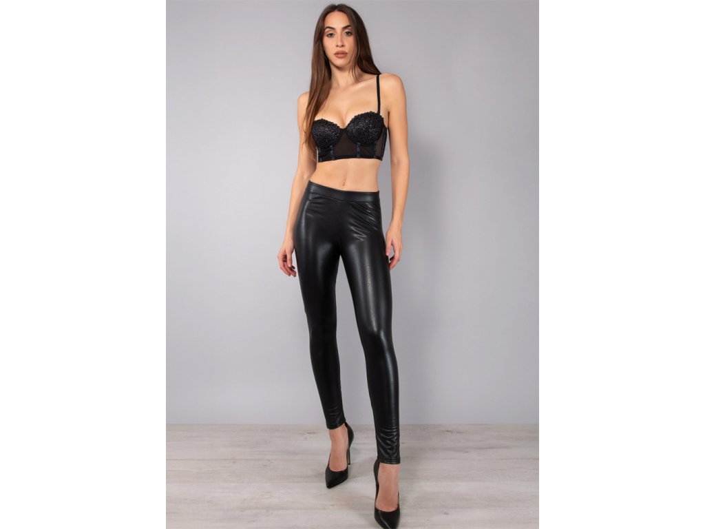 Dámské legíny Siélei v černé barvě s lesklým efektem působí moderně a elegantně. Jsou vyrobené z imitace kůže s povrchovou úpravou z polyuretanu, která se krásně přizpůsobí postavě a zvýrazní její tvary. Vnitřní strana je podšitá příjemnou látkou, která zvyšuje komfort při nošení a brání nepříjemnému lepení na kůži. Legíny mají hladký pas bez zapínání a díky elastickému provedení se snadno oblékají. Skvěle se kombinují s košilí, svetrem nebo sakem pro stylový každodenní outfit.