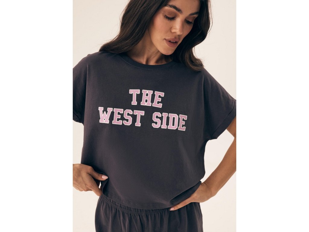 Dámské pyžamo od značky Esotiq v nadčasovém stylu pro všechny, kdo zakládají na každodenním pohodlí. Pyžamo se skládá z kratšího trička a šortek, které spolu tvoří pohodlný a stylový komplet ideální na spaní i domácí pohodu. Tričko s krátkým rukávem má na přední straně pogumovaný nápis, šortky jsou v pase na pohodlnou pružnou gumu. Díky bavlněnému materiálu je pyžamo velmi měkké a příjemné na dotek.