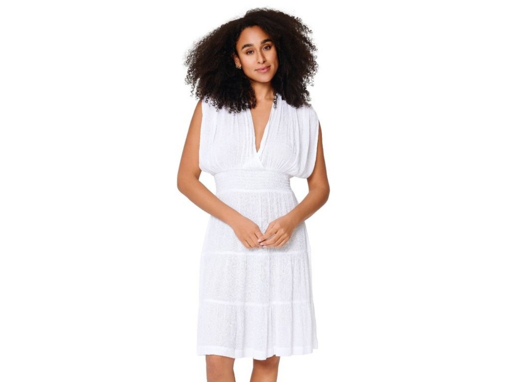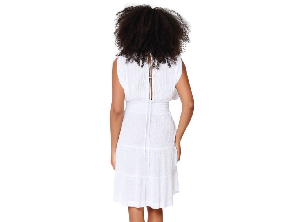 Elegantní letní šaty LingaDore jsou ideální volbou na pláž, k bazénu nebo jako lehké šaty na letní dovolenou. Díky vzdušnému střihu a příjemnému materiálu jsou velmi pohodlné na nošení i během horkých dní. Šaty mají volnější střih, který krásně splývá a poskytuje maximální komfort. Šaty mají délku ke kolenům, mají širší nabíraná ramínka. Výstřih je překřížený do „V“. Záda mají šaty holá, šňůrkou vzadu si regulujete šířku odhalených zad. Pod prsy jsou jemné „žabičkové“ gumičky pro pohodlné nošení. Design doplňuje jemné provedení a lehký materiál, který je prodyšný a příjemný na dotek. Skvěle se hodí přes plavky, ale i jako stylový letní outfit na procházku po pláži nebo do města.