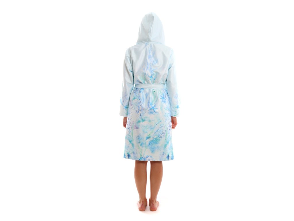ANJU elegantní dámský župan s kapucí s krásným digitálním potiskem na téma mořský svět.
