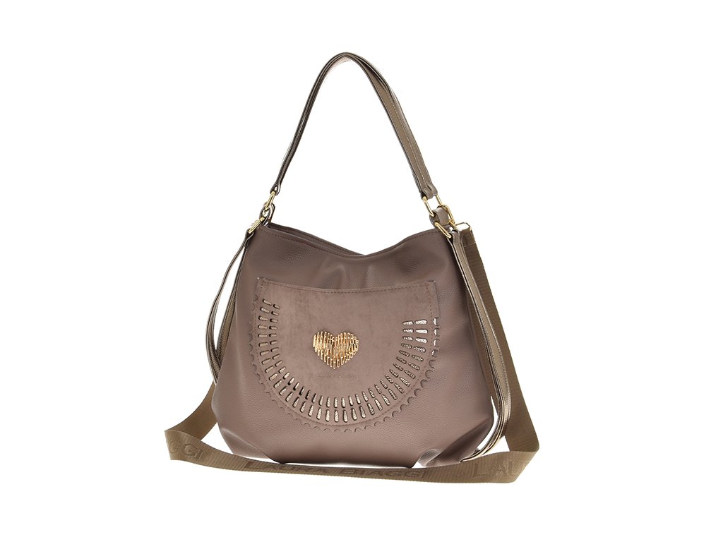 Kabelka Laura Biaggi A541/2 FangoSuede /káva hnědá/ kombinace se semišem doplněná tmavou zlatou