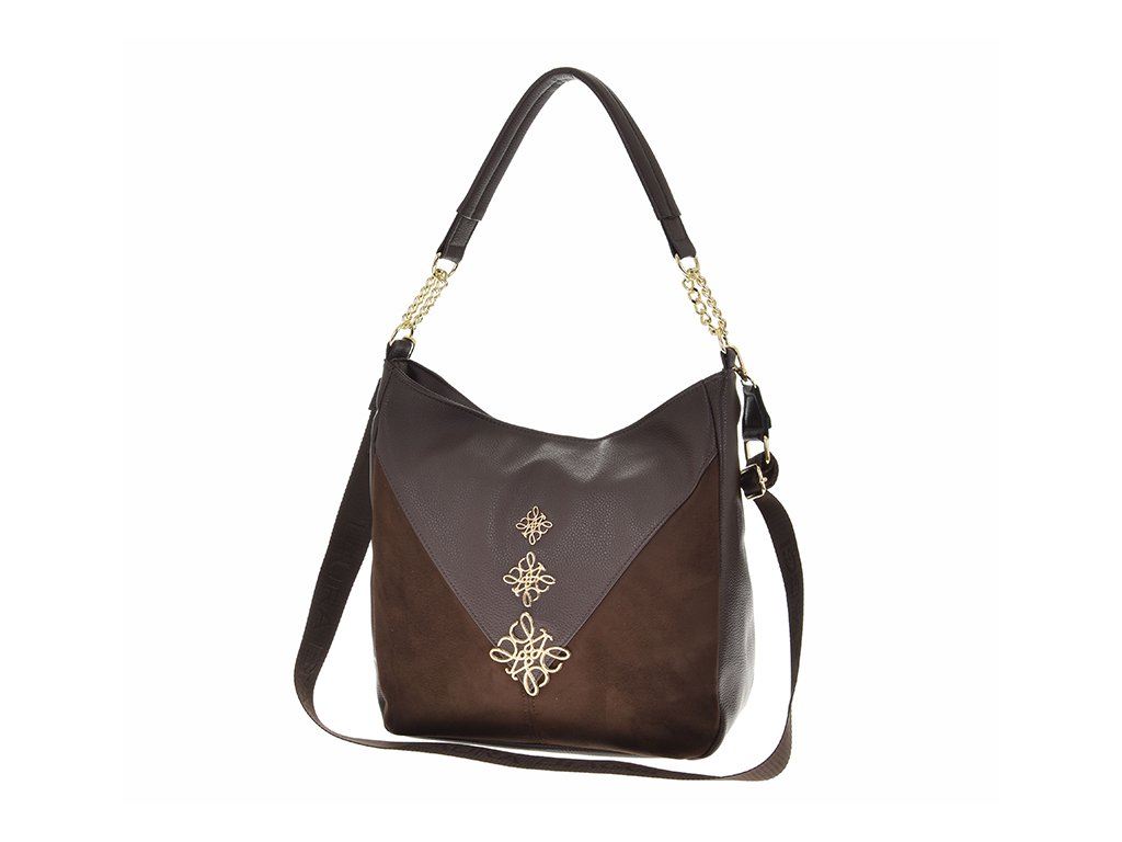 - dámská kabelka vyrobená z měkké eko kůže v kombinaci s broušenou kůží /semiš/ na předním dílu