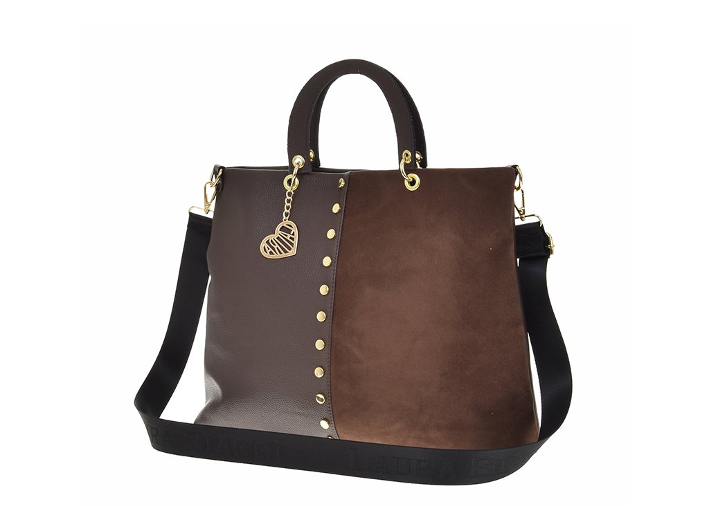 Dámská kabelka LAURA BIAGGI - barva čokoládová, kombinace s broušenou eko kůží /semiš/