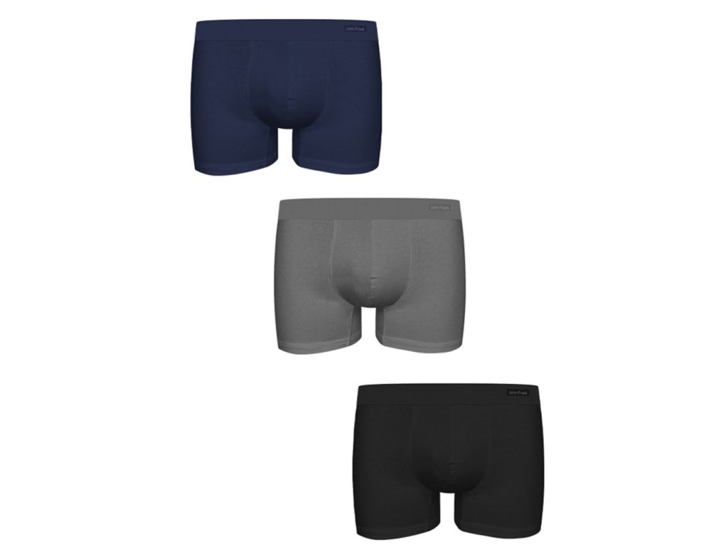 Pánské boxerky značky John Frank z materiálu s vysokým podílem modalu. Boxerky jsou velmi příjemné na dotek a pohodlné při nošení. Jemná, širší gumička v pase má na boku logo John Frank. Balení obsahuje troje boxerky v různých barvách.