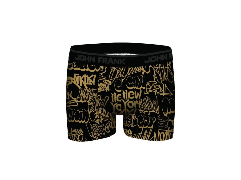 Stylové boxerky značky John Frank s originálním graffiti potiskem v černo-zlaté kombinaci. Moderní design inspirovaný ulicemi New Yorku dodá vašemu outfitu šmrnc a energii. Boxerky jsou vyrobené z příjemné bavlny s příměsí elastanu, díky čemuž perfektně sedí, jsou prodyšné a zajišťují maximální pohodlí po celý den. Elastický pas s logem JOHN FRANK podtrhuje jejich sportovně-městský styl.