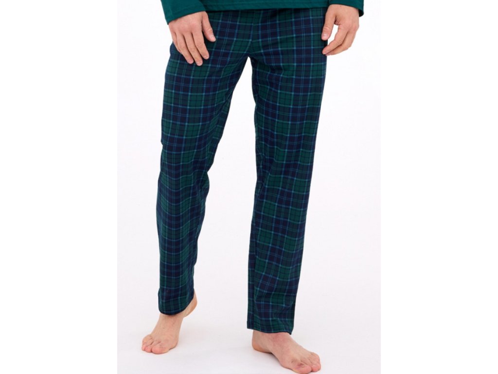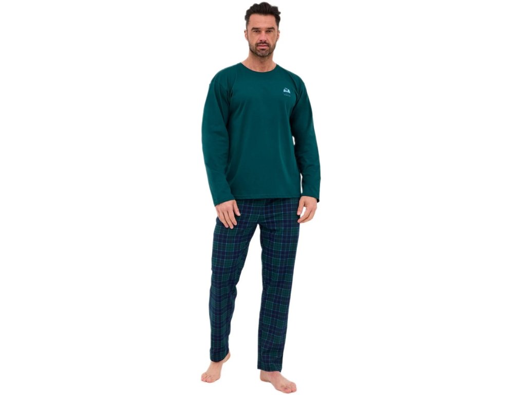 Pánské pyžamo Cornette je tradiční set dlouhého pyžama s dlouhým rukávem a dlouhými kalhotami, určený pro pohodlný noční odpočinek. Je vyrobeno z vysoce kvalitní 100% bavlny, což zajišťuje pohodlí, měkkost a dobrou prodyšnost. Horní díl má kulatý výstřih a decentní potisk na hrudi v minimalistickém a mužném stylu. Spodní díl tvoří kostkované kalhoty s elastickým pasem lemovaným bavlnou, poskytující pohodlné nošení.